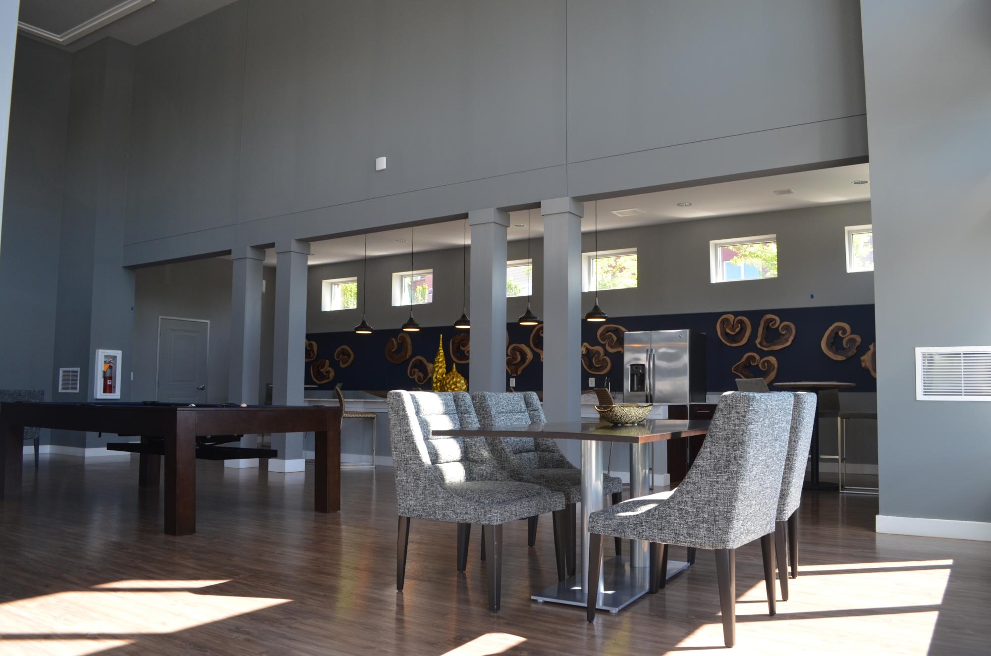 This 22.59 acre project involved construction of three four-story garden style apartment buildings; four four-story podium style buildings with ground floor parking; and one six-story podium style building with ground floor parking, 12,000 SF of first floor retail spaces, and four stories of apartments. The podium buildings include elevators.